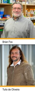 Brian Fox is the Chair of the Department of Biochemistry in the College of Agricultural and Life Sciences at the University of Wisconsin-Madison. Tulio de Oliveira is the Director of the Centre for Epidemic Response and Innovation (CERI) at Stellenbosch University.